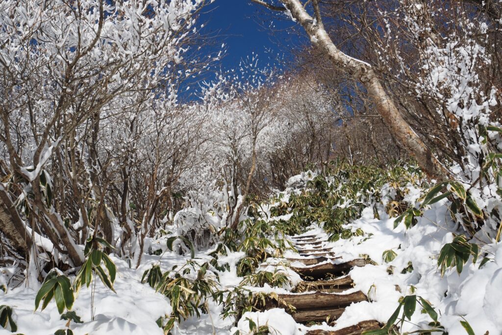 難易度的には、雪山登山初級者向けとなります。滑落・凍傷・低体温症のリスクが少しありますのでご注意下さい。積雪期に登山をする場合には、一般的な雪山登山の装備が必要です。