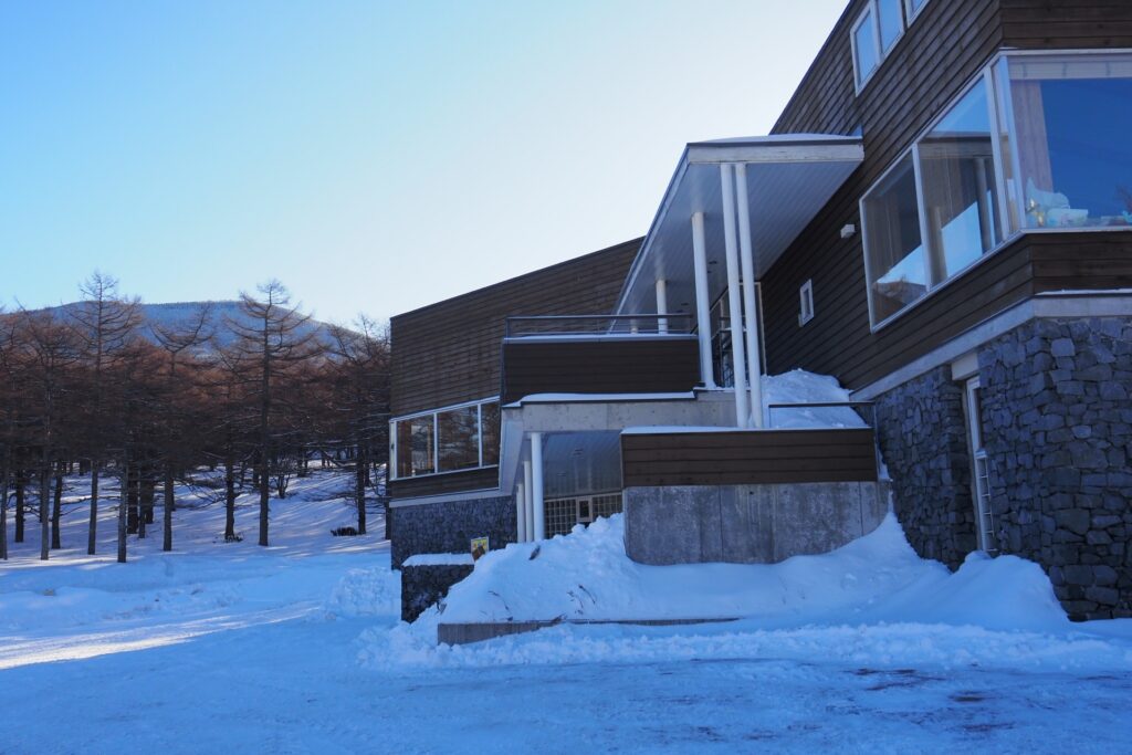 2026年2月中旬、冬の高峯山、水ノ塔山、篭ノ登山に登ってみようと思い立ち、チェリーパークラインを車で登る。ここは管理がしっかりしているので凍結は控えめだけど、念のため慎重に運転して、車坂峠の高峰高原ビジターセンターに無事到着。