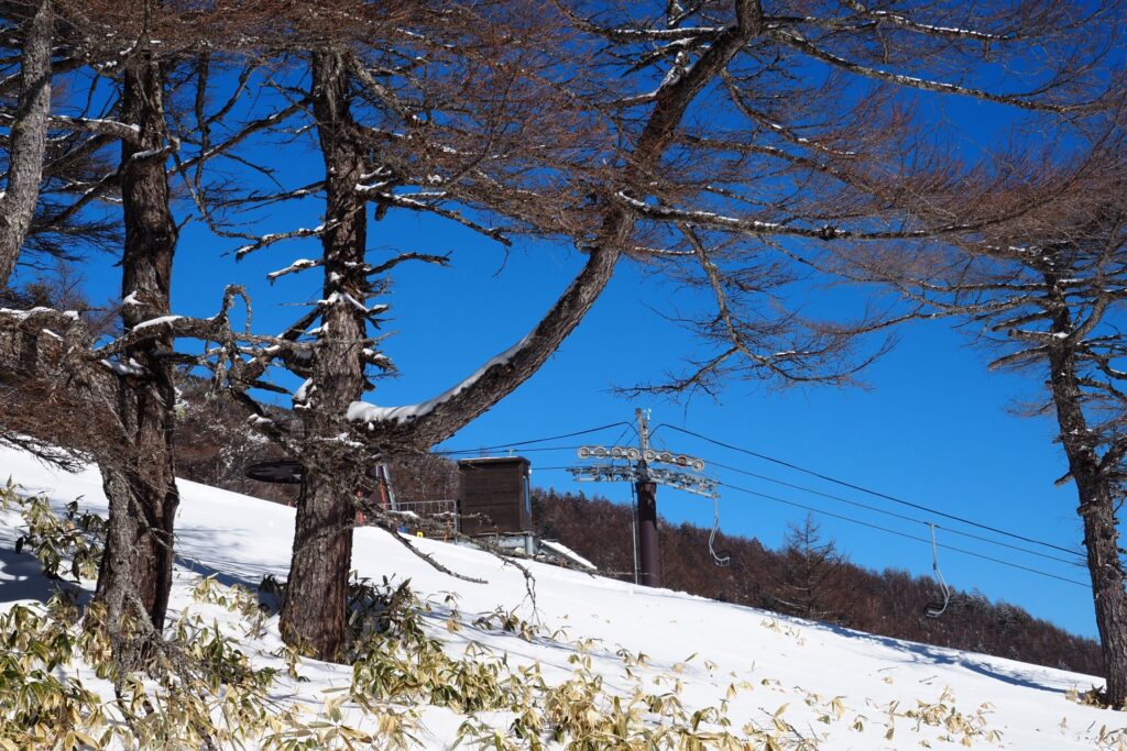 アクセス:マイカーでのアクセスは、Googleマップ大先生に聞いて下さい。なお、嬬恋村側の「鳥居峠車坂線」は冬期通行止めとなりますのでご注意下さい。交通機関をご利用の場合には、佐久平駅蓼科口発のスキー場行きのJRバスがあるようです。
