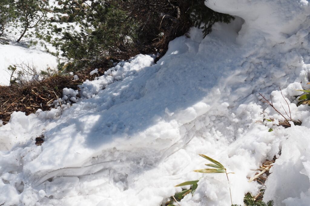 スノーシューコースのため、全体を通して雪が柔らかいことが多いと思われます。水ノ塔山~篭ノ登山間は、積雪量や雪質、スノーシューの種類によっては怖いと感じるかもしれません。無理をせず、怖いなと感じたらアイゼンに切り替えたほうが良いと思います。