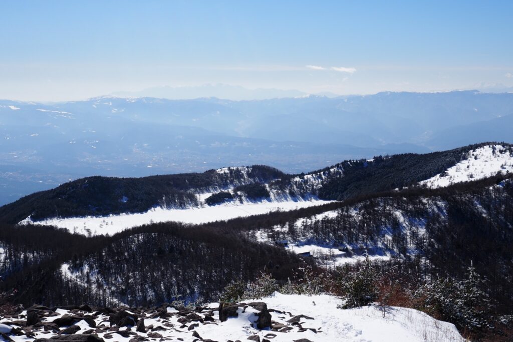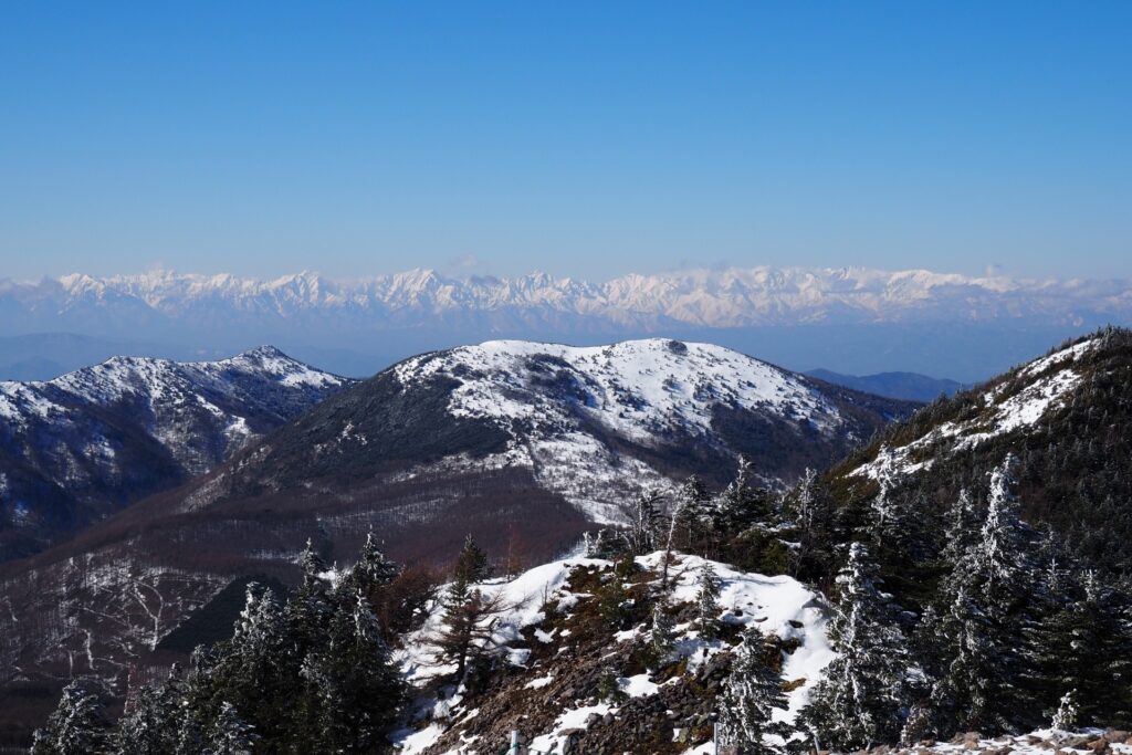 お手軽なハイキングコースだけど、山頂からの展望はとても良い。遠くに富士山や八ヶ岳、北アルプス等も綺麗に見えていた。