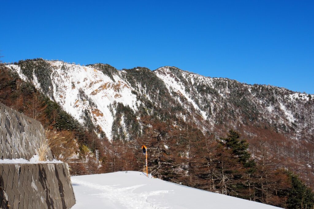 この日は平日であったが、冬でも人気がある黒斑山の登山口でもあるため、駐車場はほとんど埋まっていた。当然、ほとんどの人の目的地は黒斑山である。