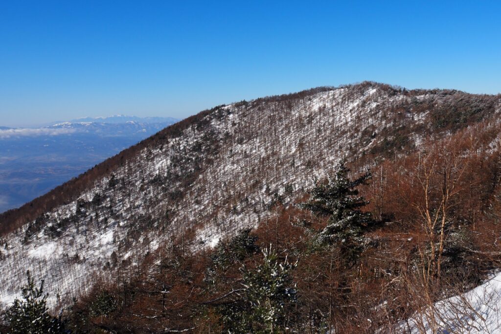 水ノ塔山の山頂からは、高峯山と同じような山域が見えた。まあ、この辺りはどこも似たような展望なんだと思うけど。