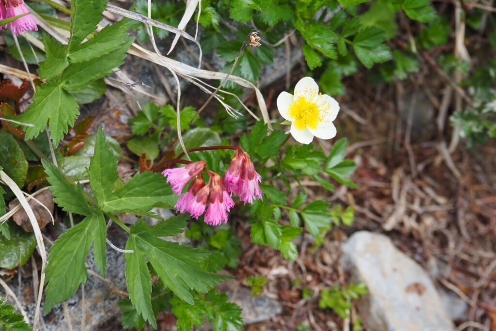 休憩した後は、爺ヶ岳方面に進む。山荘の周辺にはチングルマなどの高山植物が沢山あったが、ガスって来たので適当に写真を撮って先に進んだ。