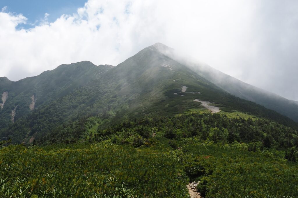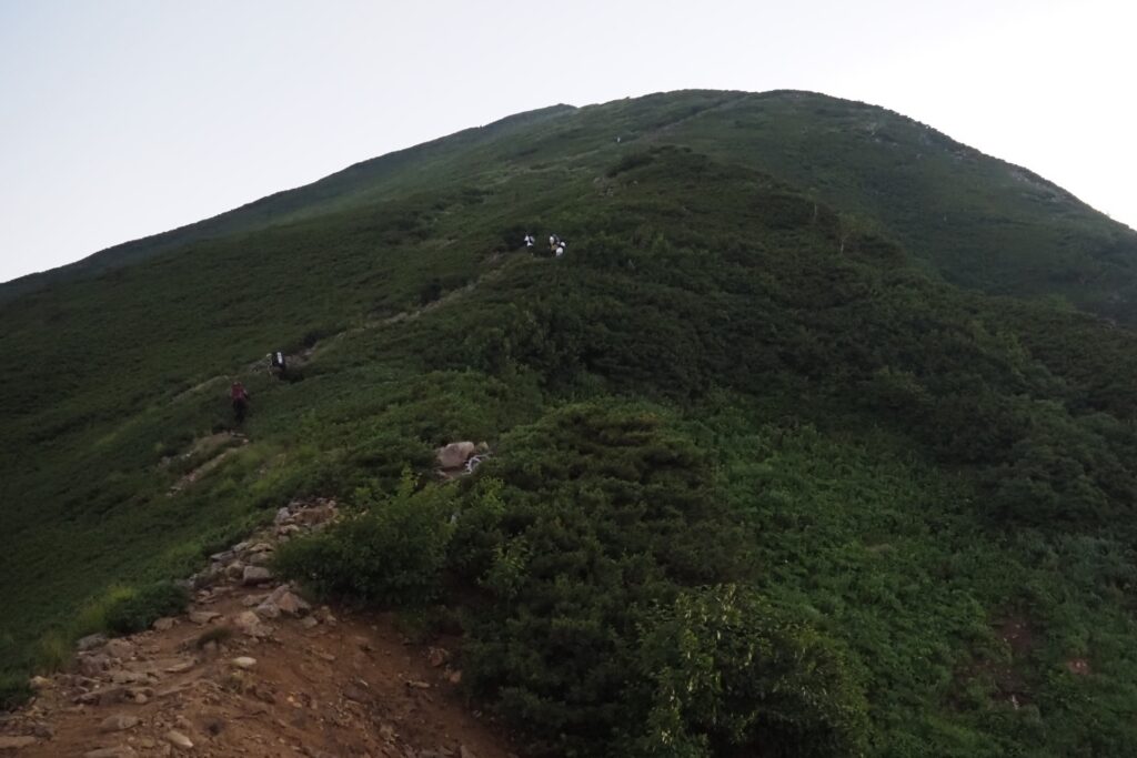 爺ヶ岳への道は比較的なだらかで、障害となるような難所は無い。疲れていても、ゆっくりと歩き続ければ、やがて山頂に着くだろう。帰路には、この周辺にライチョウが沢山居た。