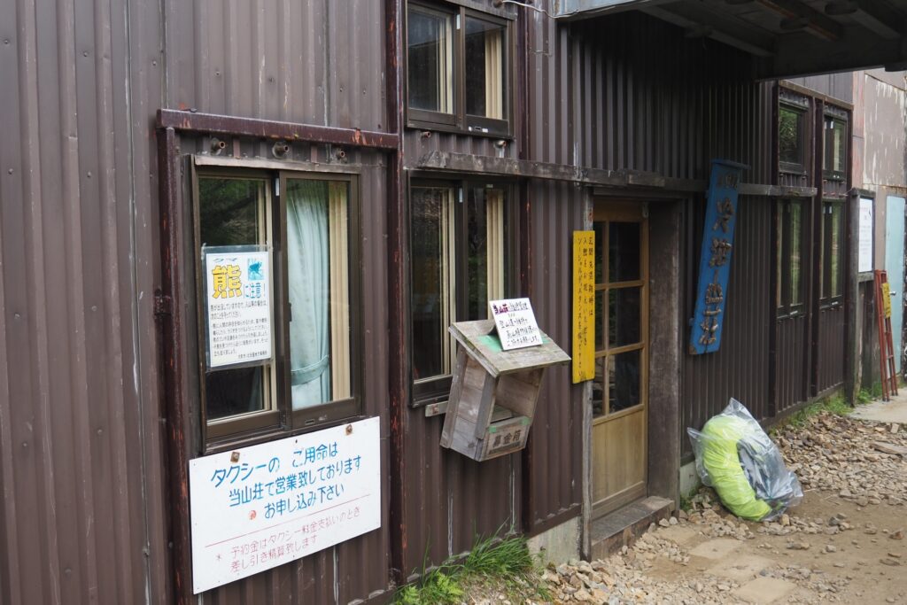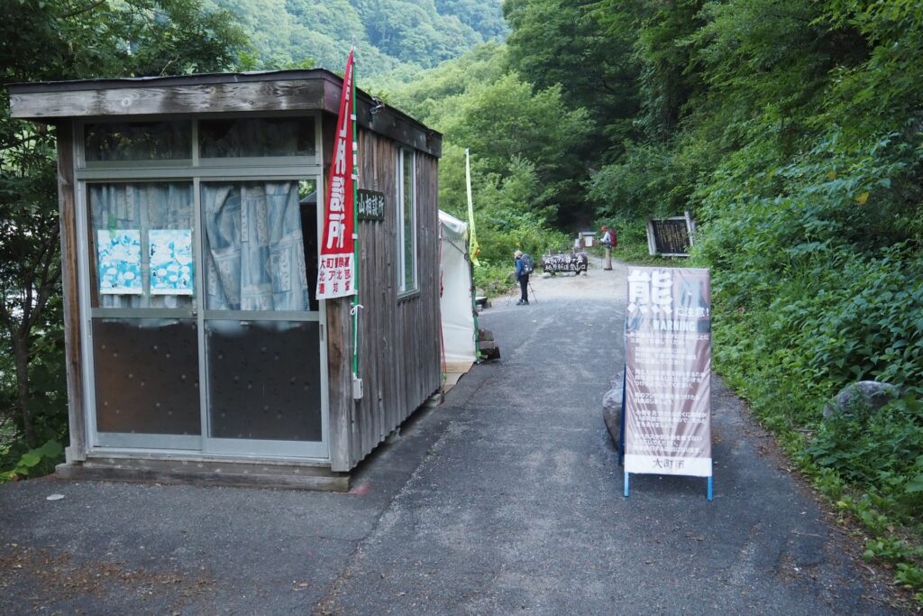 登山口には相談所があったが、平日なので閉まっていた。このルートは全体的に熊に関する注意書きが多い。かなりの確率で遭遇するようだ。