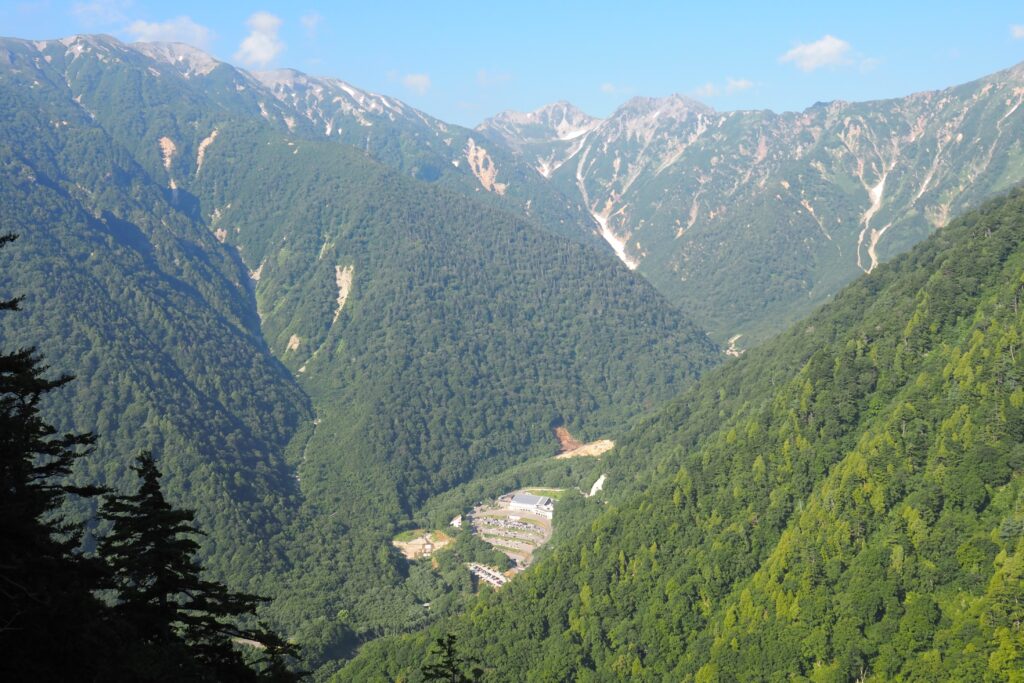 一時間程度歩くと扇沢駅が下に見える。駅見岬と言う名前が付いている場所があるものの、それ以前にも普通に見えていた。