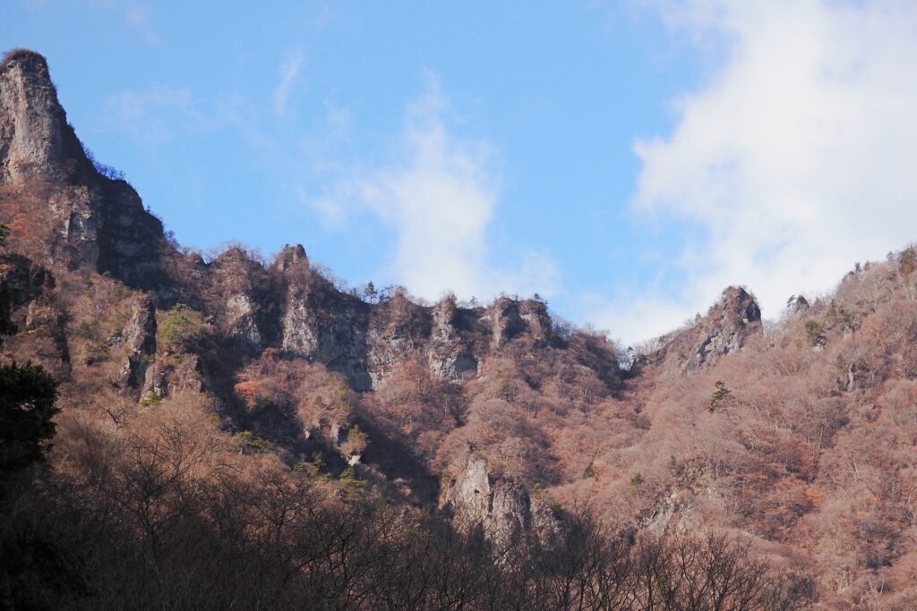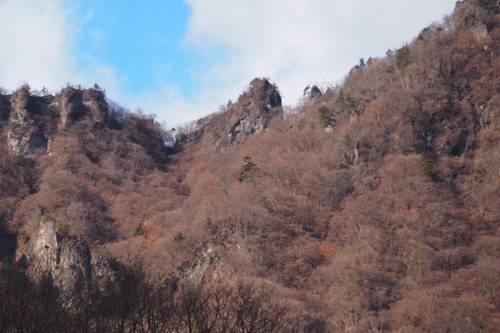 少し時間があったので、妙義山の山火事跡を見てきました。登山道は火災調査のため閉鎖されていたので道路から見ただけですが、パッと見は火災跡がわからない位です。