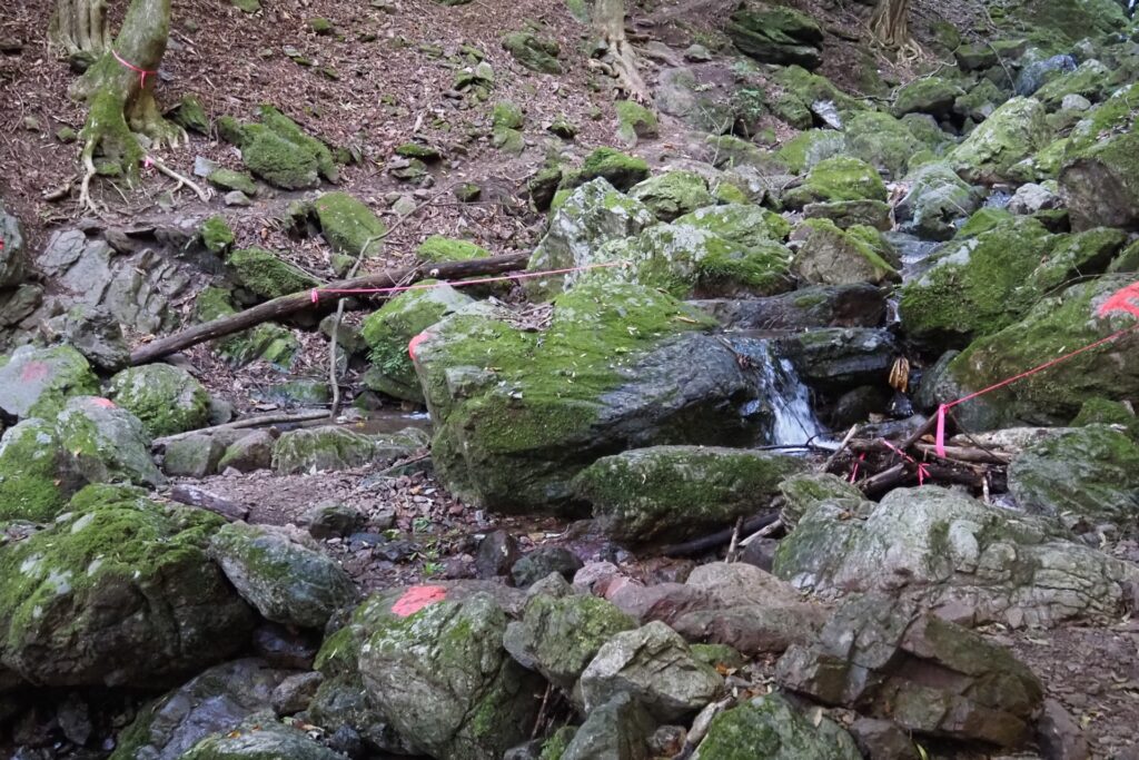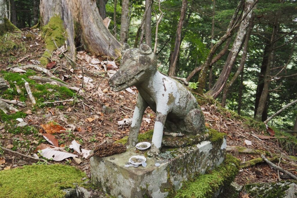 今回の日向大谷口ルートは障害物が少なく、時々、山岳信仰の石像などがあるものの、沢を渡る時以外は単調で少し退屈だった。当日は残暑が厳しく、蒸し暑さと体調不良で足が動かず、何度も引き返したいなと思いながら、ゆっくりと進んだ。