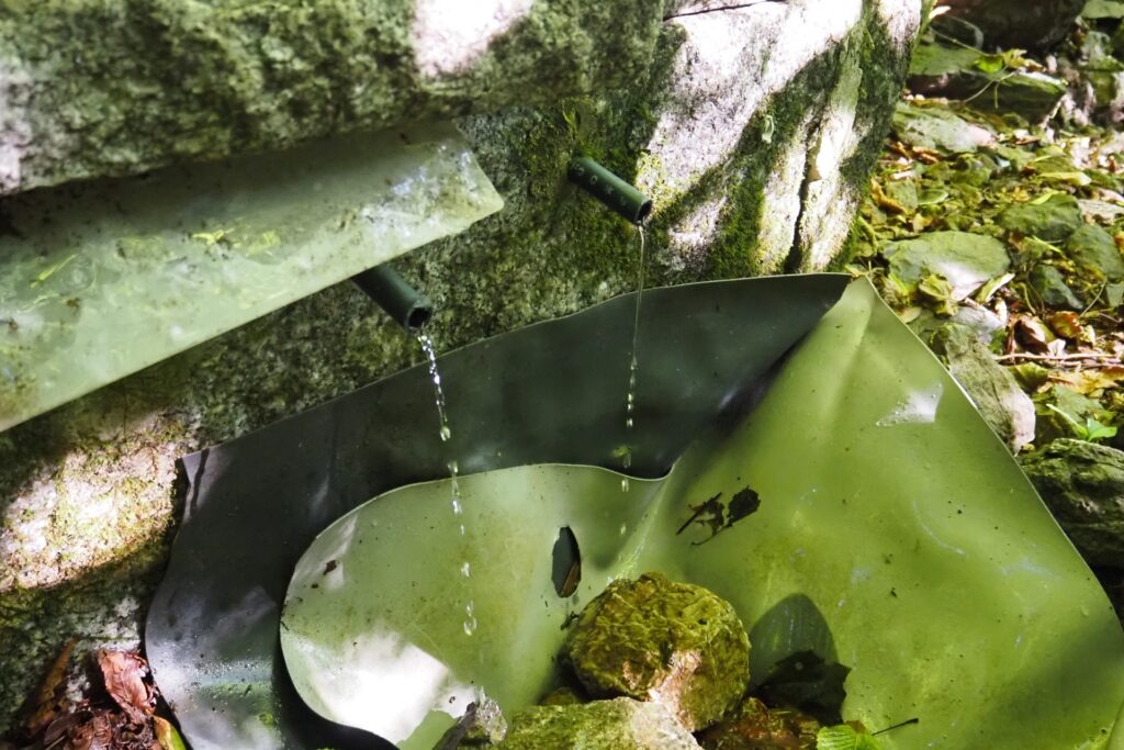 何度か沢を渡ると、やがて普通の登山道になる。そこを少し登ると、弘法之井戸と言う水場に到着した。水に触れてみた感じだと、生水では飲用しないほうが良い気がする。